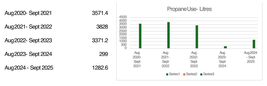Propane use in the past 5 years. Note the drop in use once the heat pump was installed.